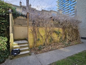 Image shows the extent of the wisteria’s growth into the frame of the shed