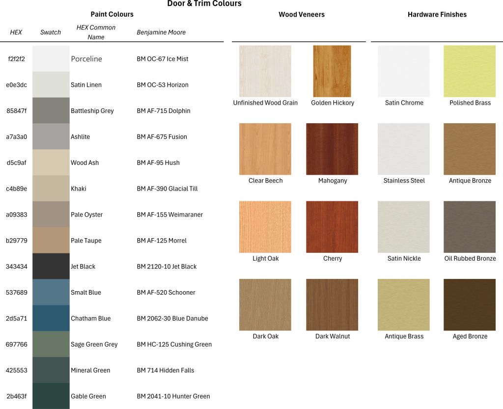 - Hardware Colour – Hinges, Lever & Ball Sets Only