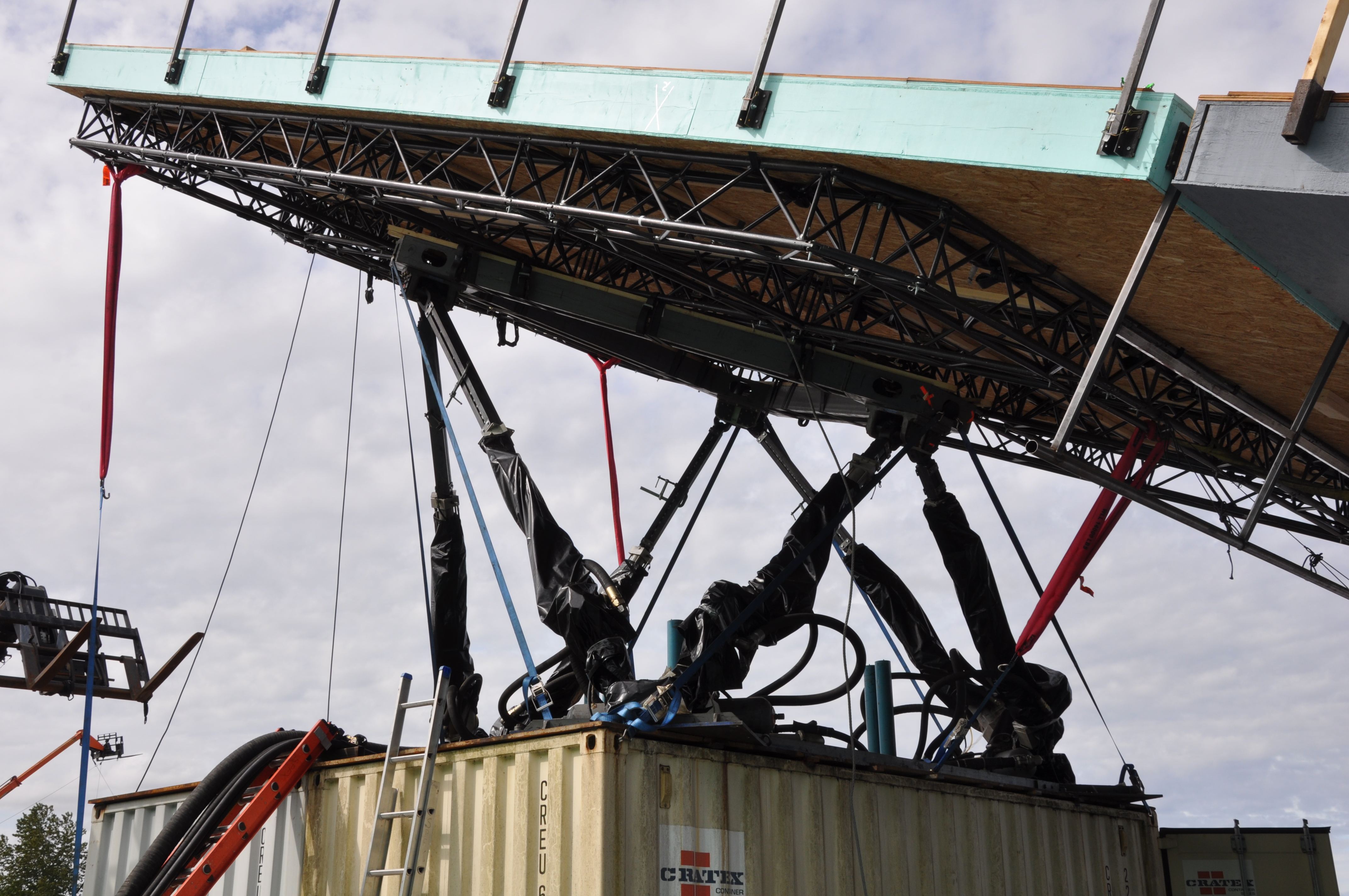 Hydraulic arms used in the movement of the deck