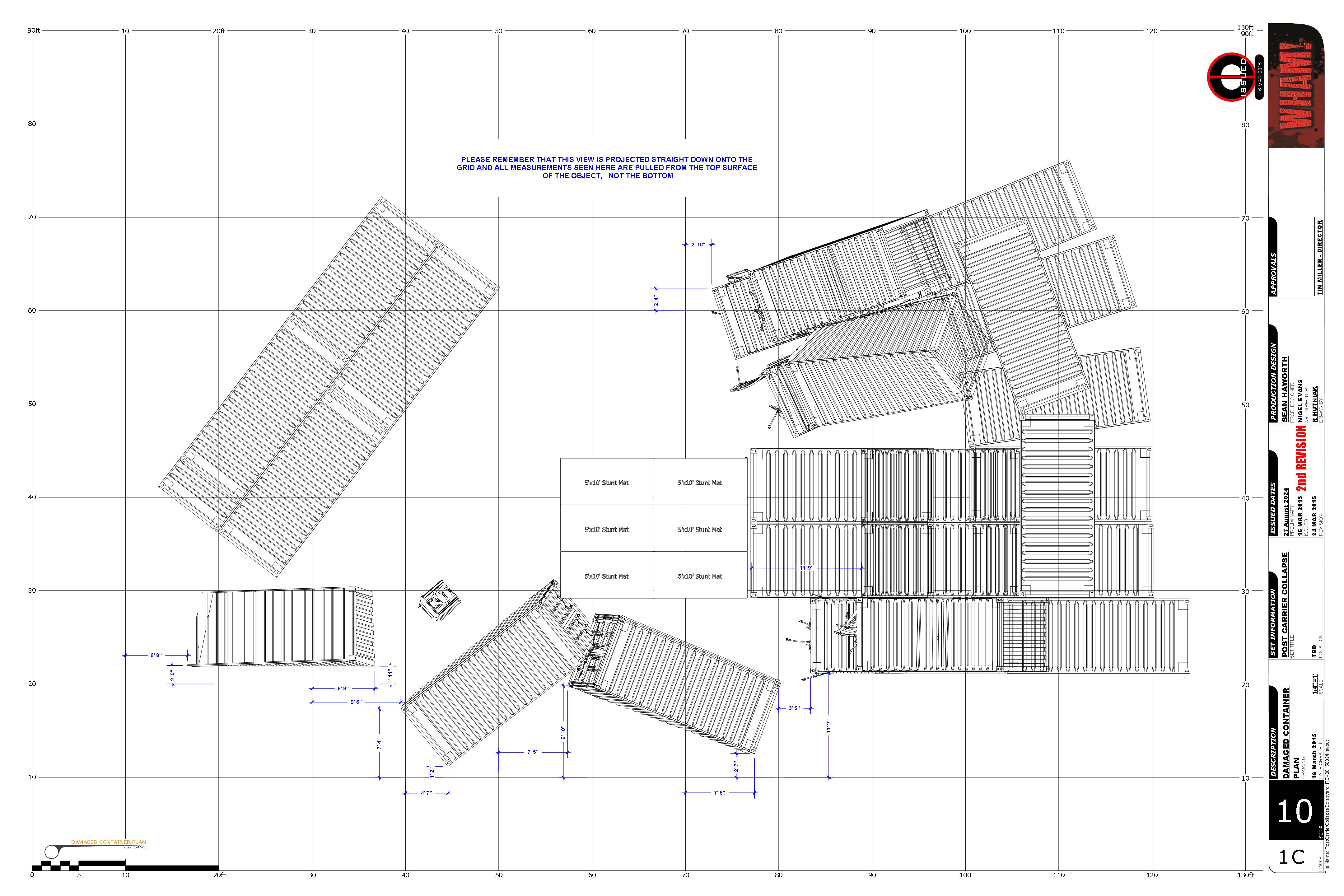 Post Carrier Collapse – Construction Drawings -Site Plan. Setting out the Damaged Container layer of elements