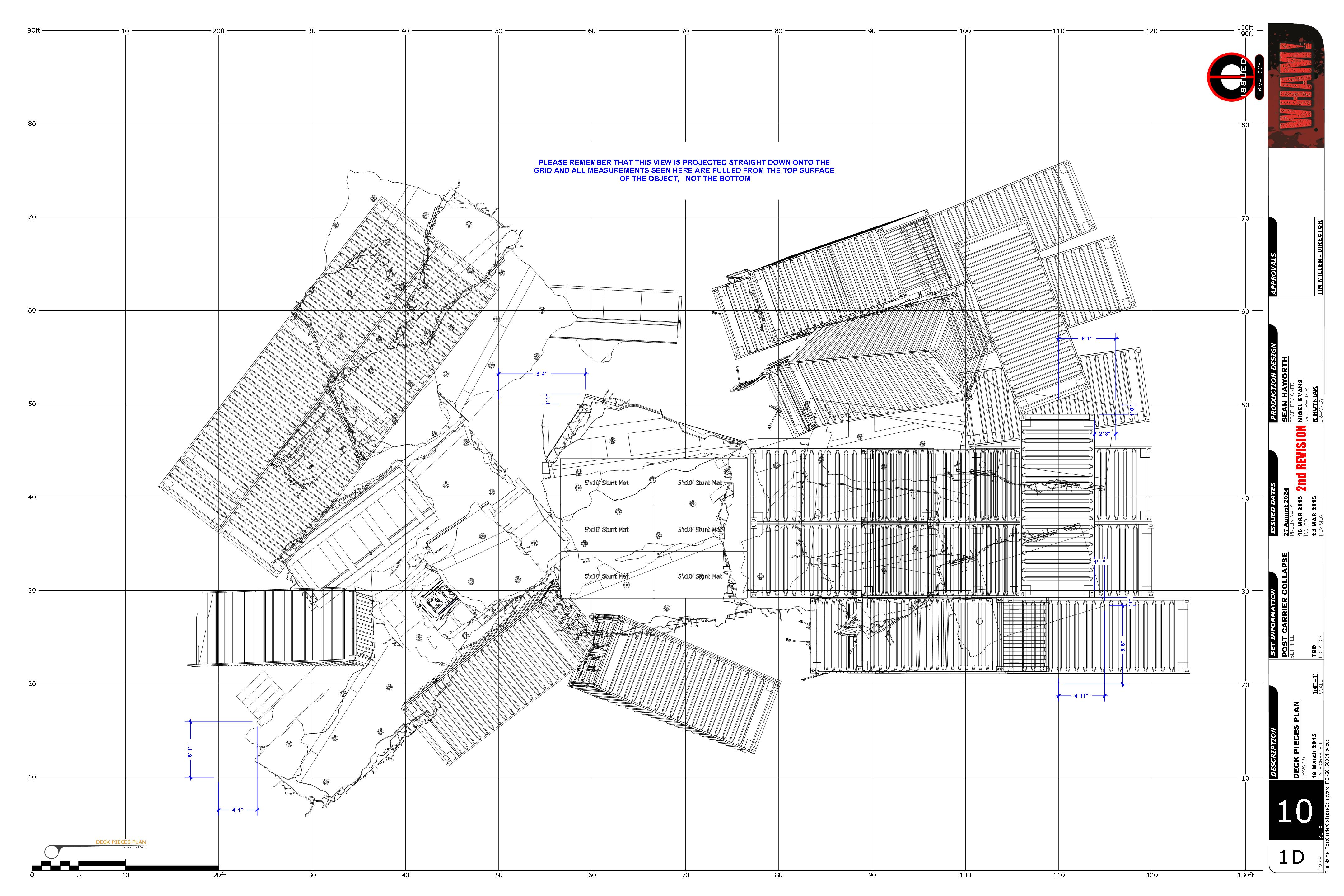 Post Carrier Collapse – Construction Drawings -Site Plan. Setting out the Flight Deck layer of elements